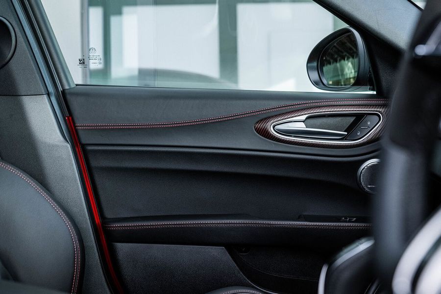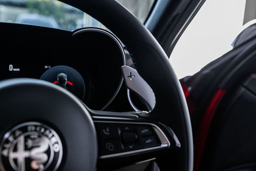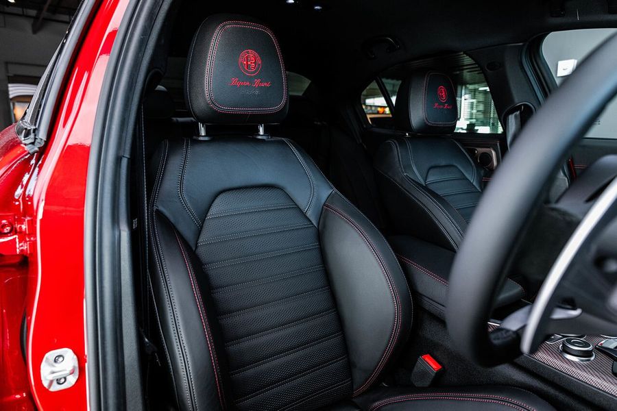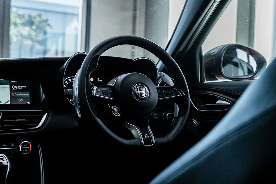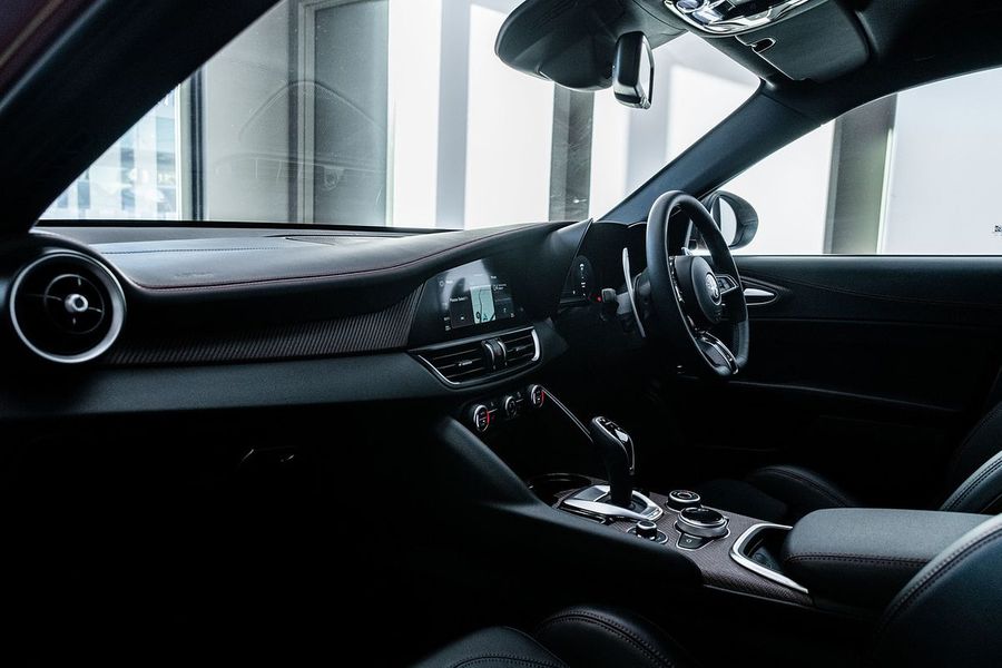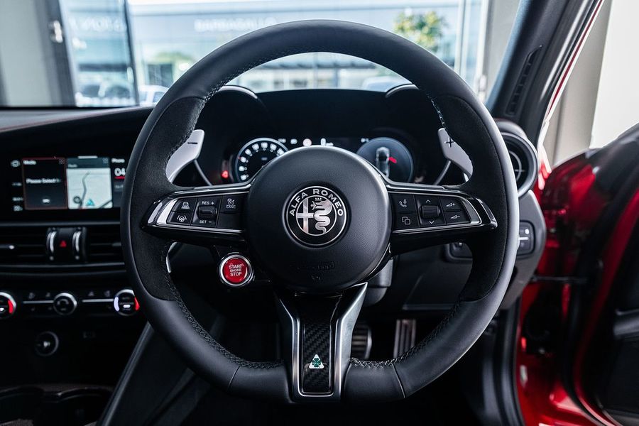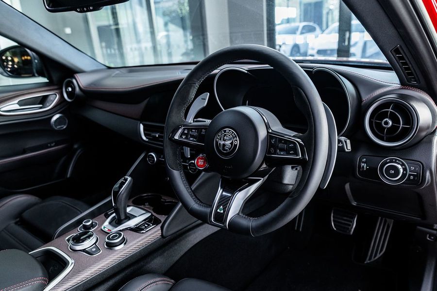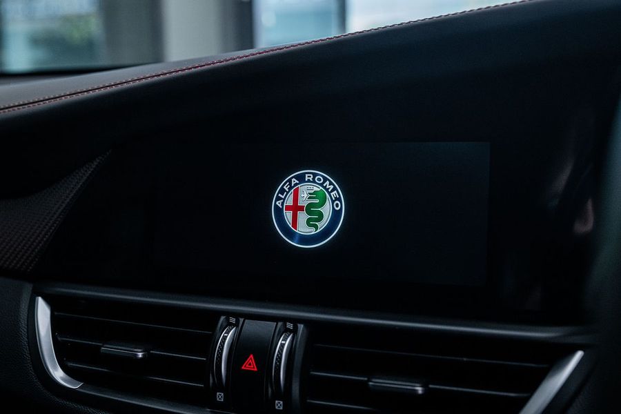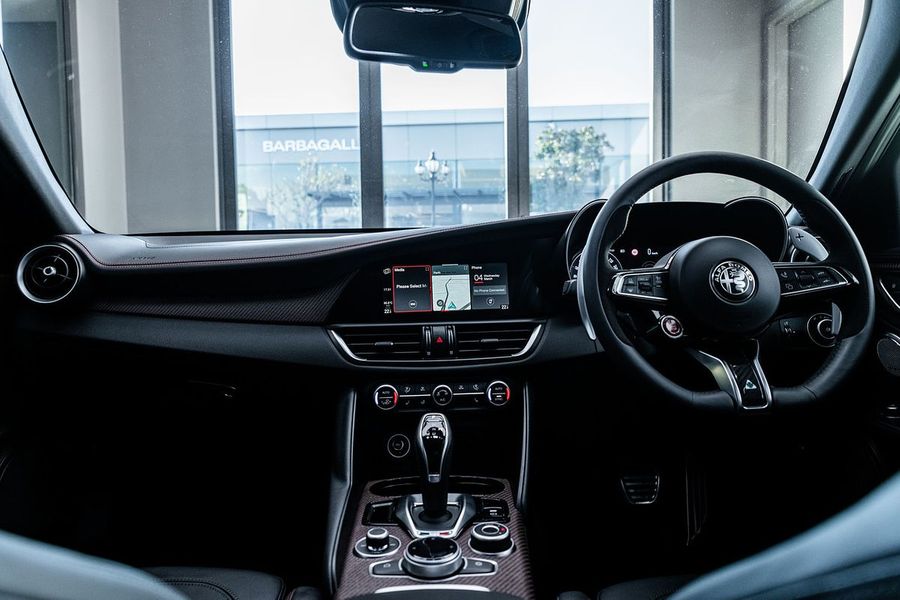 The driver of the All-New Alfa Romeo Giulia Quadrifoglio Super Sport is always at the centre, in a cockpit designed with the same approach as the exterior: minimalistic, with a use of sophisticated materials such as carbon fibre and leather. Powered by a 2.9L V6 BiTurbo, 375kW 600Nm 8-Speed ZF Automatic with Manual Shift Paddles. This Rear Wheel Drive Performance icon reaches 0-100 km/h in 3.9 Seconds onto a top speed of 307 km/h. Fuel Consumption is rated at a combined