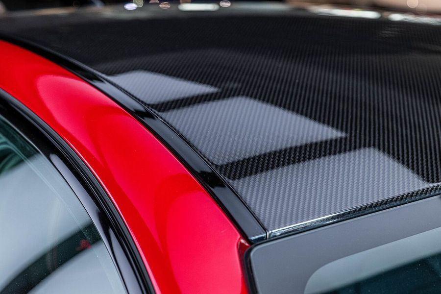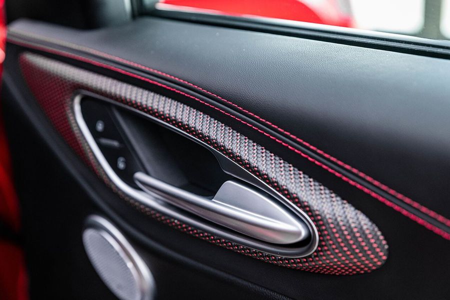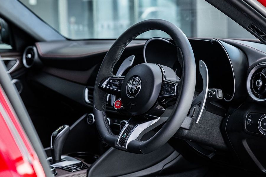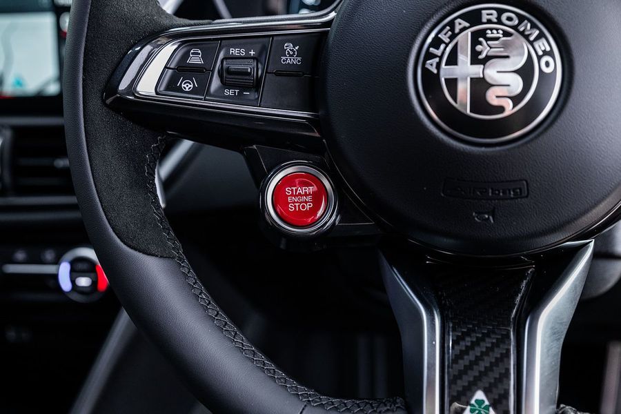 - Race inspired Steering Wheel with Leather, Alcantara and Carbon Fibre with Red Starter Button