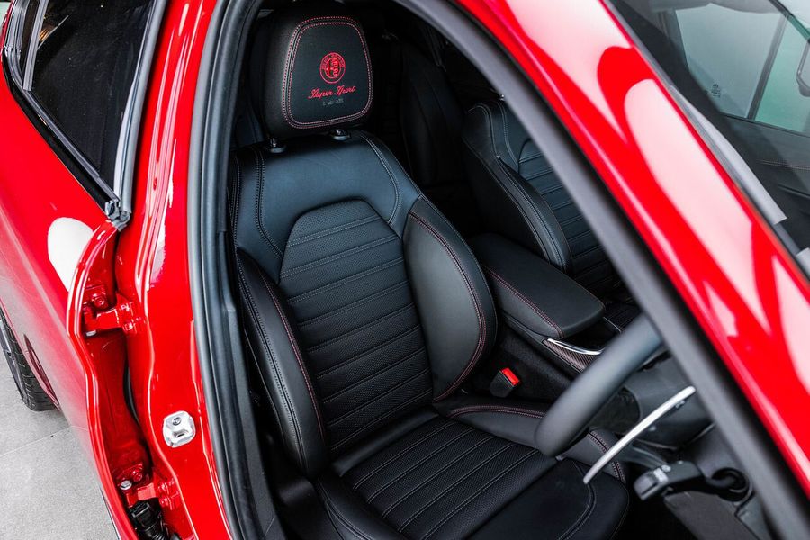 - Italian Black Leather Sports Seats with Contrast Red Stitching & Seat Heating & Electric seat adjustment with Memory function