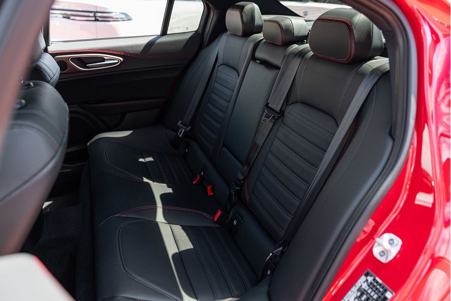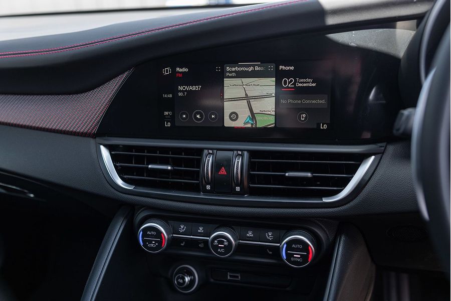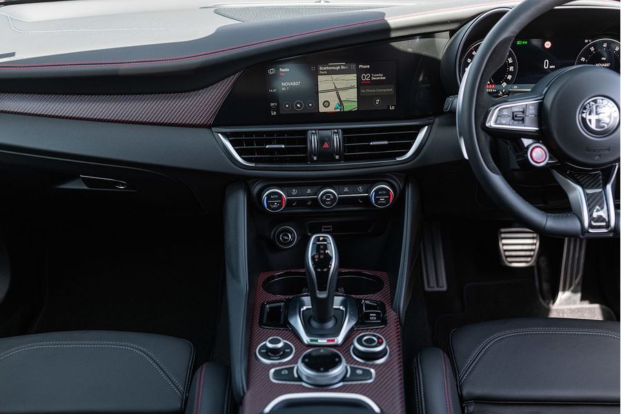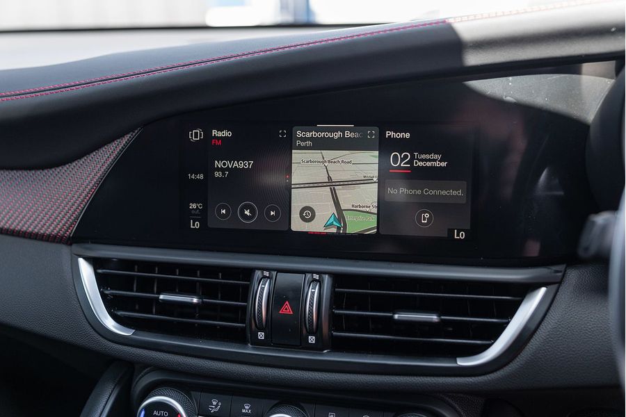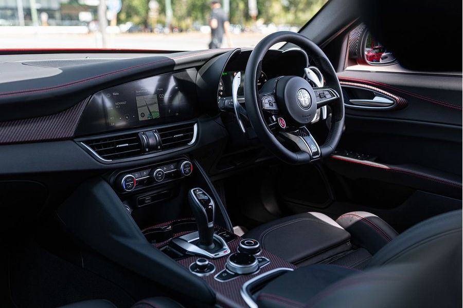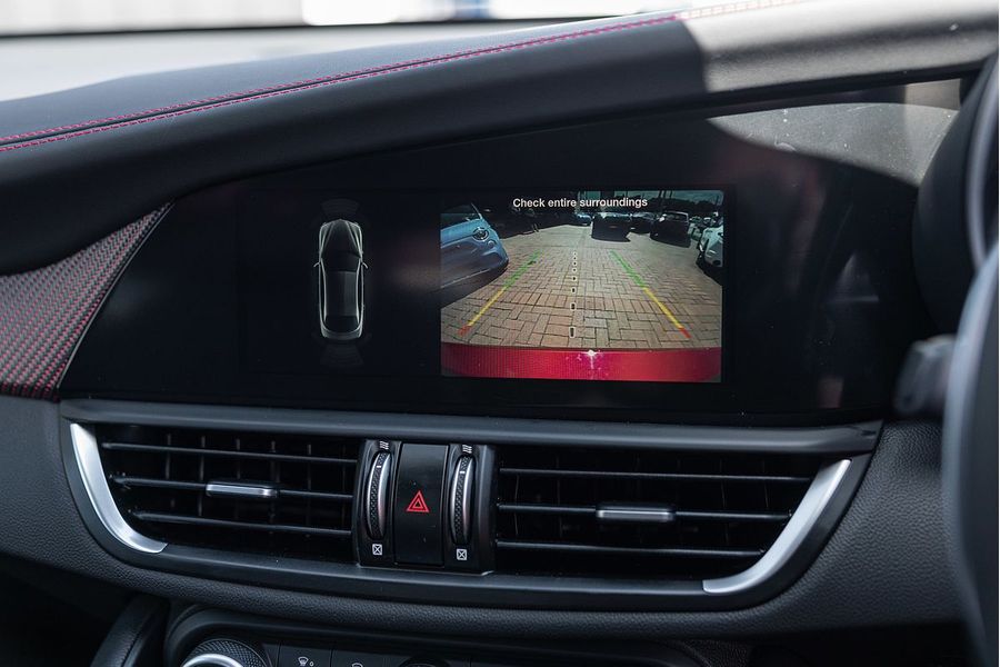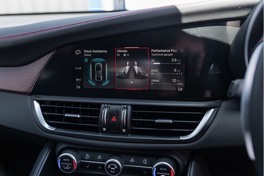 The driver of the All-New Alfa Romeo Giulia Quadrifoglio Super Sport is always at the centre, in a cockpit designed with the same approach as the exterior: minimalistic, with a use of sophisticated materials such as carbon fibre and leather. Powered by a 2.9L V6 BiTurbo, 375kW 600Nm 8-Speed ZF Automatic with Manual Shift Paddles. This Rear Wheel Drive Performance icon reaches 0-100 km/h in 3.9 Seconds onto a top speed of 307 km/h. Fuel Consumption is rated at a combined