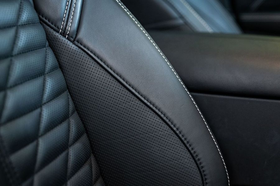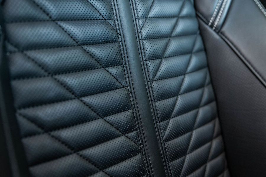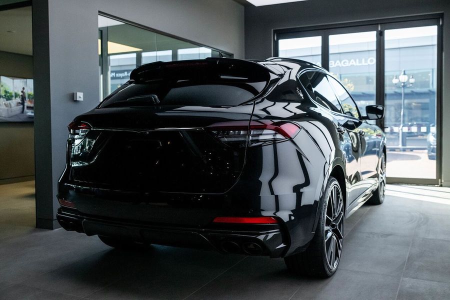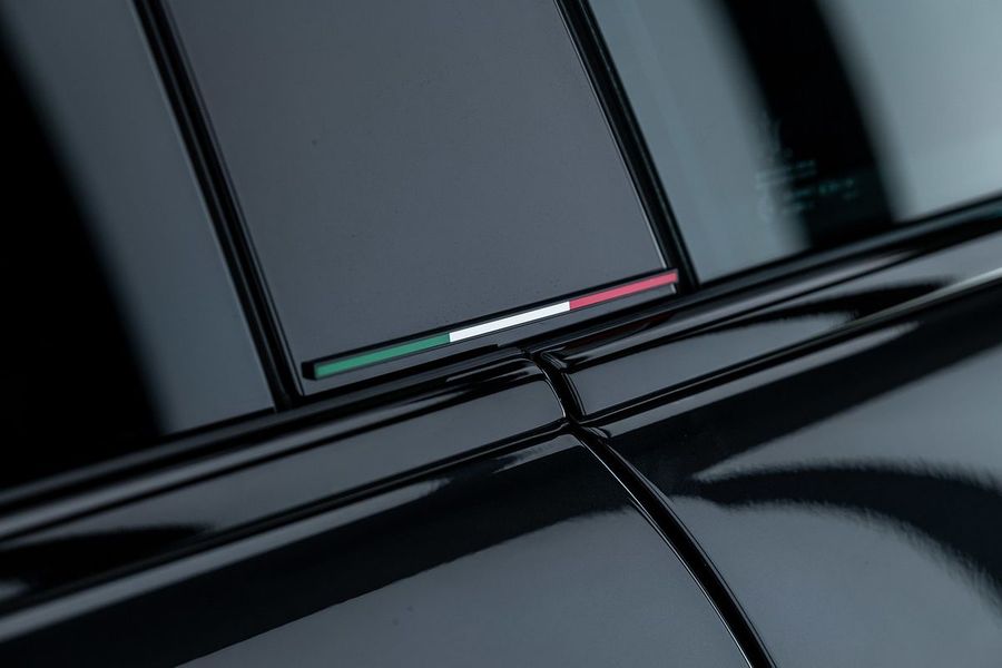 Finished in Nero Ribelle exterior and black and white stitching interior.